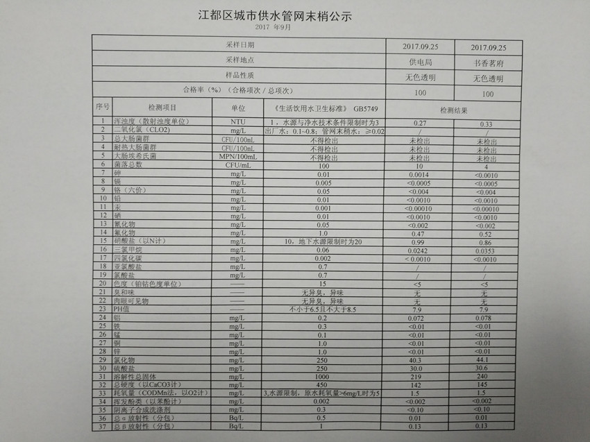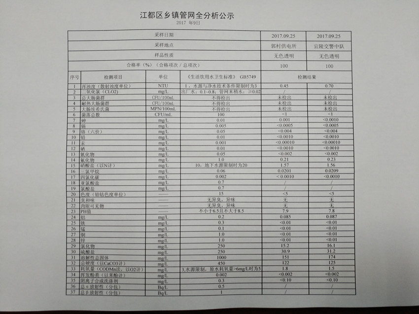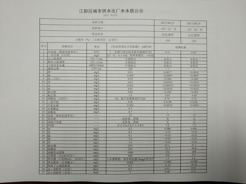 水質(zhì)公示