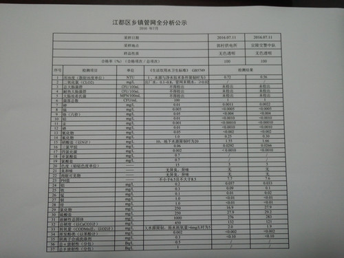 2016年7月江都區(qū)鄉(xiāng)鎮(zhèn)管網(wǎng)全分析公示