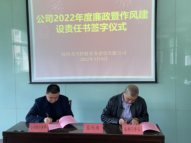 總之,通過本次《責任書》的簽訂,將進一步強化各級的責任擔當,層層壓緊壓實相關責任,使各級主體責任落地生根。同時也將不斷進一步推進公司廉政工作和作風建設向縱深開展,黨風廉政和作風建設教育也更趨常態化、全覆蓋,使全體水務干部職工更為牢固樹立起紅線和底線意識,從而為打造一支風清氣正、務實高效的水務干部職工隊伍和公司的行穩致遠發展起到更為良好的保駕護航作用。